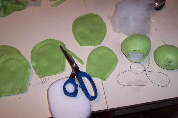 Coser alrededor de los dedos dejando la base de los dedos del pie para dar vuelta y rellenar. Recortar el margen de costura... puede llegar muy cerca de la costura ya que el paño grueso y suave no se debilite como otras telas. Girar los dedos de los pies hacia fuera y cosas a la firmeza que desee. Ejecutar una puntada de recogida alrededor de la base de los dedos con la aguja y el hilo y tire firmemente para cerrar para arriba de los dedos del pie. Siempre puede añadir más relleno ahora si decides que quieres son los dedos del pie "más difíciles" (imagen 3)