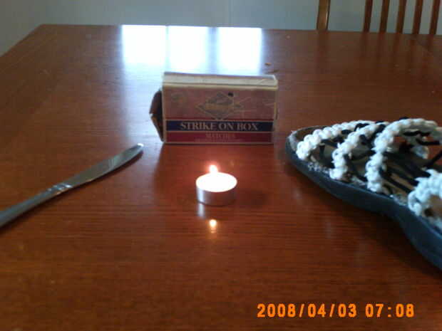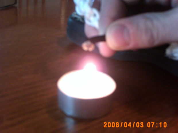 Time to get creative!!!!! Las fotos aquí son sólo directrices. Usted puede hacer este paso cualquier forma que desee. Sólo asegúrese de que usted fije firmemente el cordón con pegamento caliente, o mi método recomendado, el derretimiento y el fusible. Me gusta usar una vela en lugar de un encendedor porque generalmente se quema más caliente y más consistente que un encendedor. Paracord es Nylon funde en fuego alto y cuando Paracord líquido negro se encuentra con las correas blancas grandes, obtendrá un vínculo muy fuerte entre los dos. Calentar un cuchillo de mantequilla y presionar dos un lugar donde los dos producirá un efecto similar. Consulte las fotos para un mejor detalle.