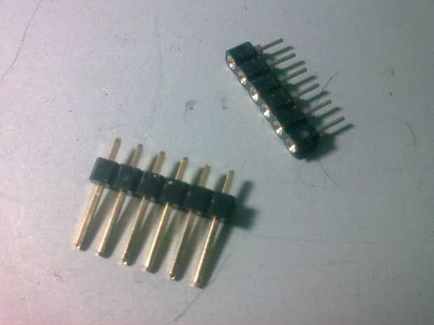 1 x cabeceras lejos de rotura recta (necesita 28 pins por un Arduino Duemilanove) 1 x cabeceras lejos mujer romper (o perno de máquina) Poco de cinta Soldadura y cautín