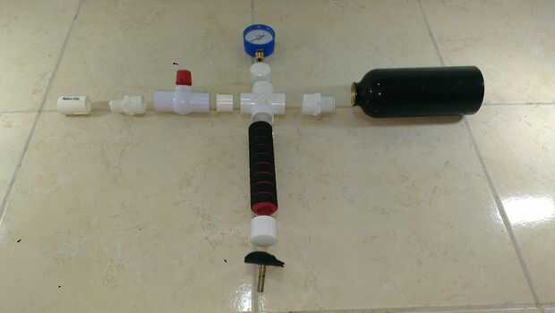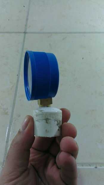 3 hacer un agujero en uno de los tapones pvc y ponemos el medidor pvc