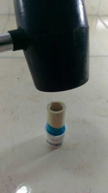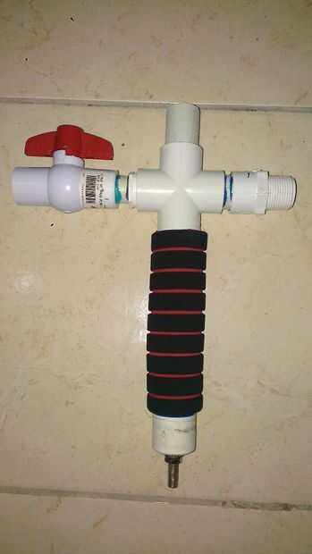 5 cortamos un trozo de 8 pulgadas de el tubo de pvc 3/4 y ponemos como el magno de la cruz