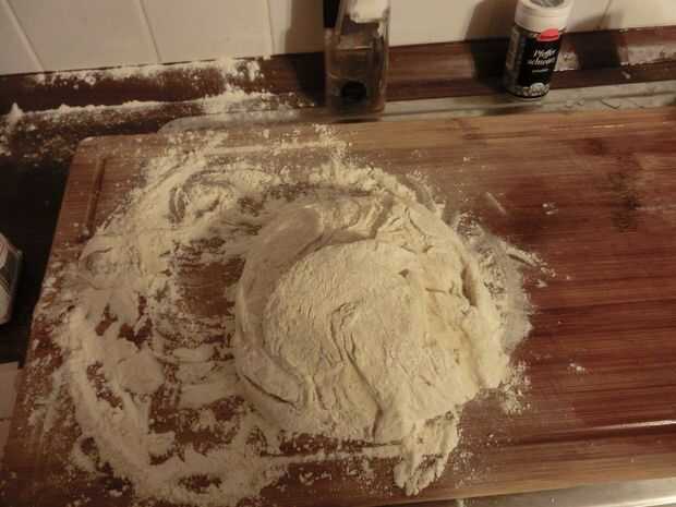 Después de que la masa haya doblado en tamaño, lo saca de la taza y amasar sobre una superficie enharinada. Es aconsejable amasar durante 5 minutos.