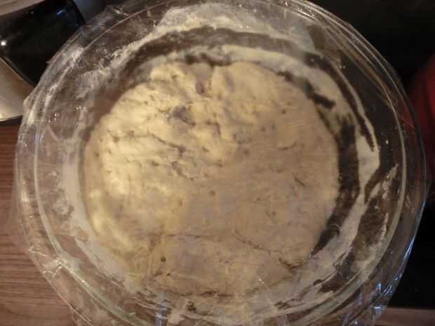 Después de haber creado el lugar de la masa un sello de plástico en la parte superior del recipiente y deja reposar hasta que haya doblado en tamaño. Esto puede tomar hasta una hora.