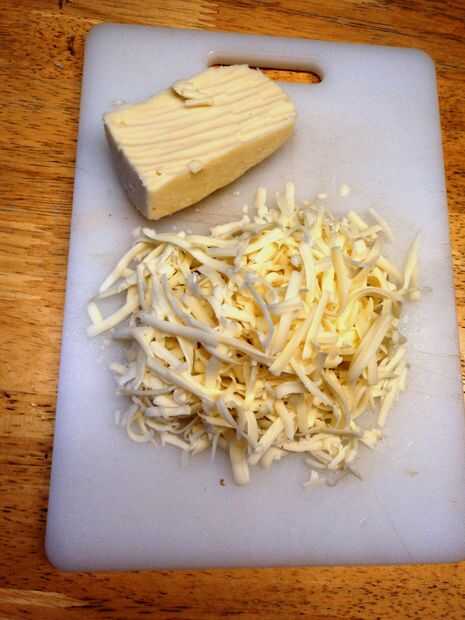 Rejilla el fontina u otro queso suave, hasta que tenga aproximadamente 2/3 de una taza.