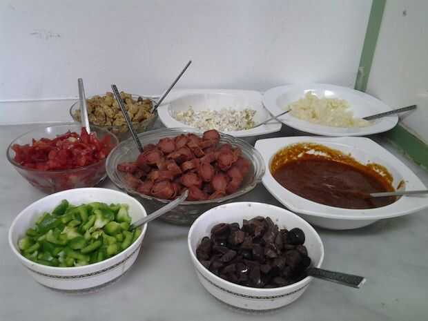 Añadir cosas como en la masa, pero no olvides el tomate salsa de primera. Imagen 4 muestra lo que elegí hacer. (Pimiento verde, tomate, oliva, mozzarella, salchichas, pollo)