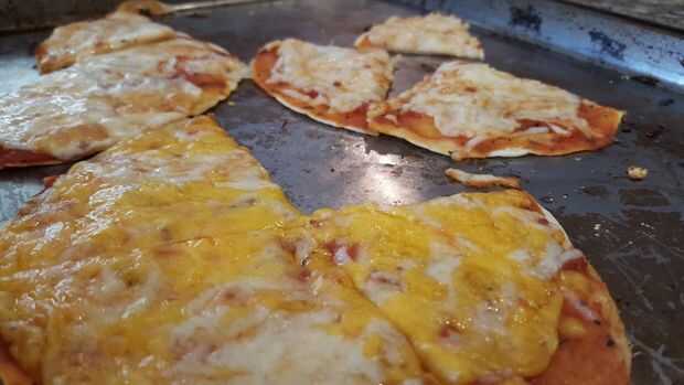 Pero lo que sea, estás solo y que es nada en el congelador para comer. Pero Nick, ¿cómo puedo hacer pizza solita? Shhhhhhhh, que todo va a estar bien. ¿Tienes pan de tortillas? ¿Tienes salsa de tomate? Tienes esto. Esta receta es probablemente exactamente lo que hacen en Applebee para pizzas del menú de sus niños, por lo que es tan barato que no debería preocuparte jugar.
