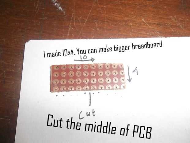 1. Corte el centro del PCB (hacer 10 x 4. Puede hacer más grande protoboard)