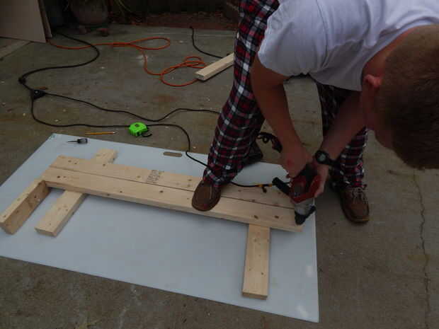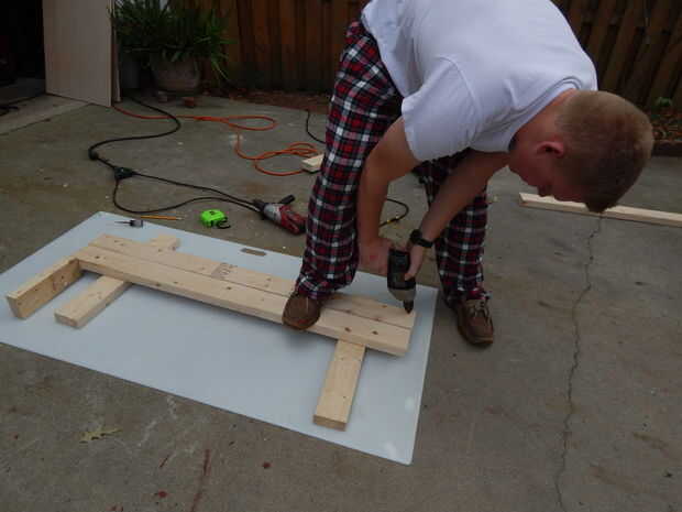 Utilice su avellanado de la broca en cada uno de los ocho orificios por lo que será la cabeza de los tornillos de debajo de la superficie de la madera.