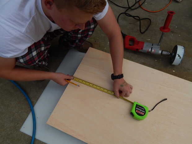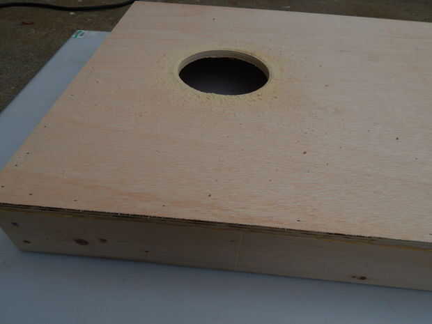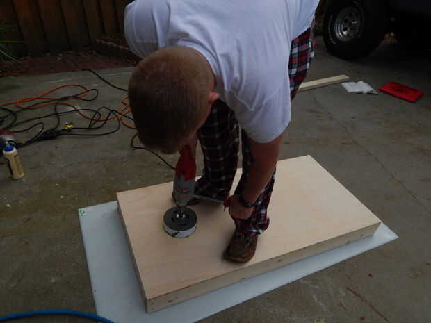 La siguiente parte puede ser algo complicada si no tienes un agujero vio. Deberás trazar 6' círculo de diámetro y corte cuidadosamente a lo largo con una sierra de calar. Aquí, una sierra del agujero 6" hace menos de un dolor de cabeza. Coloque la broca de sierra en la muesca y corte a través de la Junta. Debe usar un taladro de gran alcance, baja velocidad para ello. Un taladro normal no tendrá suficiente energía para encender la sierra y permitirá la sierra a morder la madera haciendo que la broca gire en lugar de las sierras. Es una manera fácil de lastimarse.