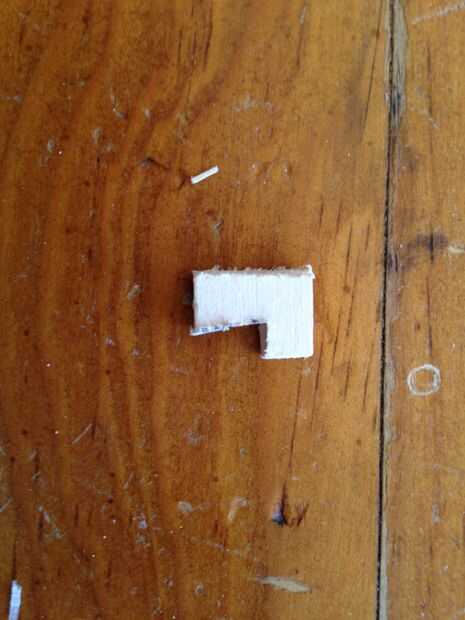 Cortar un pequeño trozo de madera como el sobre en la imagen. Ahora, lo pegue en la parte delantera del fuselaje.