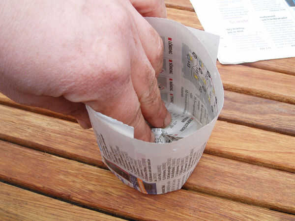 Cómo hacer plantación orgánica ollas con periódicos viejos (5 / 7 paso)