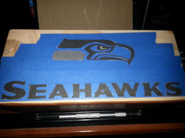 Comencé con un 4 x 6 x 10 pieza de pino recuperada, batido de arena y limpiar limpia de polvo. Entonces establece una capa de cinta adhesiva y utiliza una fina capa de pegamento de Aleene en la parte posterior de mi plantilla y lo encima de la cinta de enmascarar, luego utilizando el cuchillo x-acto para cortar la plantilla hacia fuera centrado y pelada la cinta fuera de alrededor de la plantilla. (Necesita cortar completamente a través de la plantilla y la cinta adhesiva).