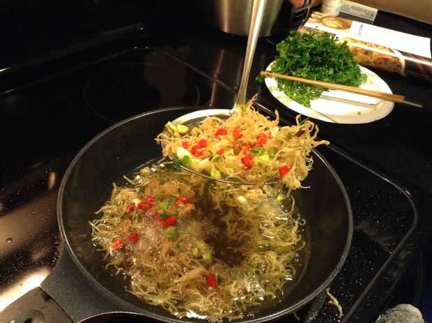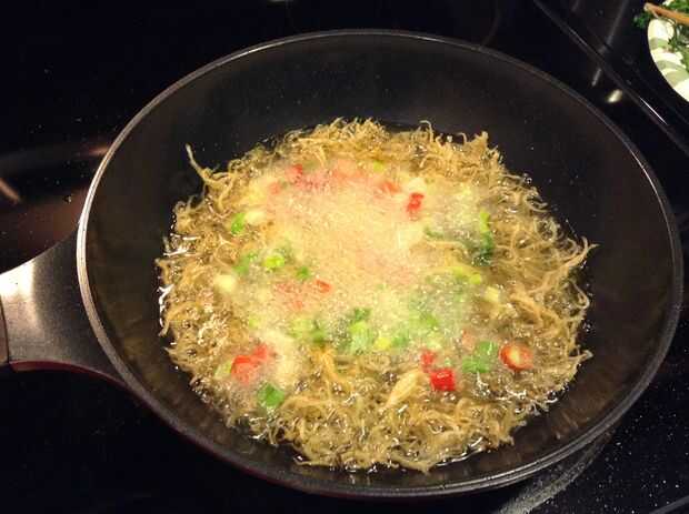Después de mezclar, tome su cuchara y sacar todo el contenido en un recipiente de metal.