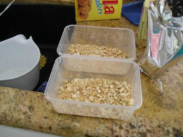 Solo romperlas para arriba levemente. No hay necesidad de pulverizarlos! Se ablandará en el pudín. Hice dos contenedores como quisiera darle a mi señora de vecino uno de ellos. Por lo tanto, los dos platos.