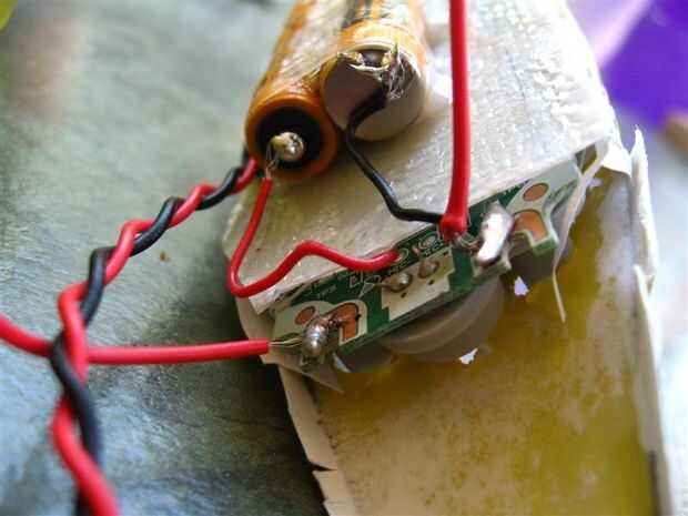 Después de que las baterías han sido grabadas juntos, cortar un trozo del corto (1cm) de alambre y soldadura que conecta un terminal positivo al terminal negativo. Alternativamente, podría hacerse la conexión puramente de soldadura. A continuación, suelde las pilas a los cables correcto viene de la placa de circuito.
