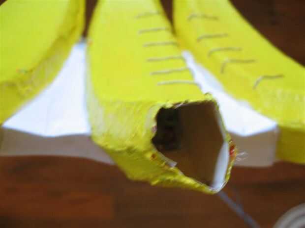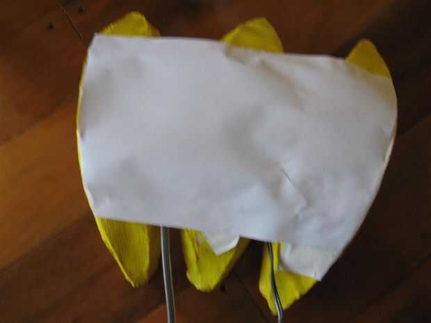 El primer paso es cubrir la enorme cavidad que acaba de hacer. Consigue un trozo de papel lo suficientemente grande para alcanzar a través de los tres plátanos, recortar a la medida y péguelo en. Usted debe terminar con algo como la imagen de abajo, excepto se verá aún mejor cuando haya terminado.