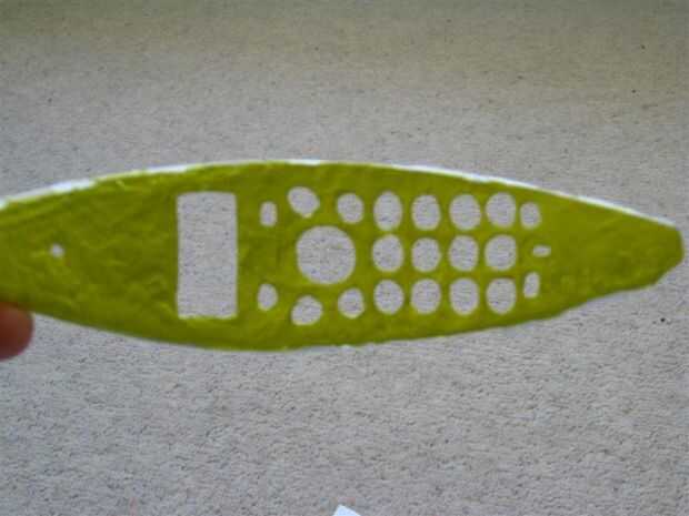 Lo primero que debe hacer para blu-tack la cara frontal del teléfono (la cara que usted compró, no se está haciendo) en la ventana y trazar los orificios. La materia does ' t demasiado en esta etapa si están un poco apagados - usted puede hacer los agujeros un poco más grandes antes resinación, luego cortarlas un poco más pequeño cuando vuelva a cortar los agujeros después de fibreglassing y hacerlos más grande otra vez y poner un poco más de la pintura en los agujeros para hacerlos más pequeños.
