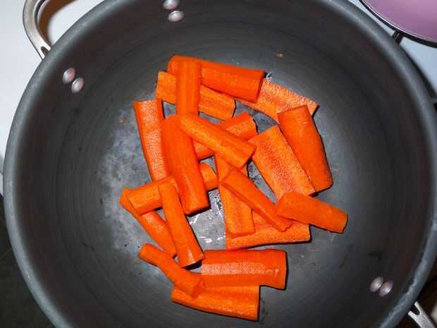 Limpio, cáscara. y picar las zanahorias en 2 pulgadas piezas.