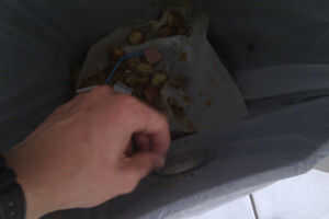 Cuando llega a la bandeja, abrir con la mano libre (o si tiene una papelera de pie activa, use su pie) y el filtro en el lado difícil.