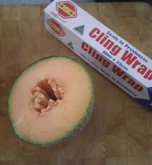 Poner se aferra abrigo sobre la fruta y poner el animal de la comida en un recipiente hermético.