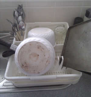 Por lo tanto, ahora lavamos los cubiertos y lo que queda.