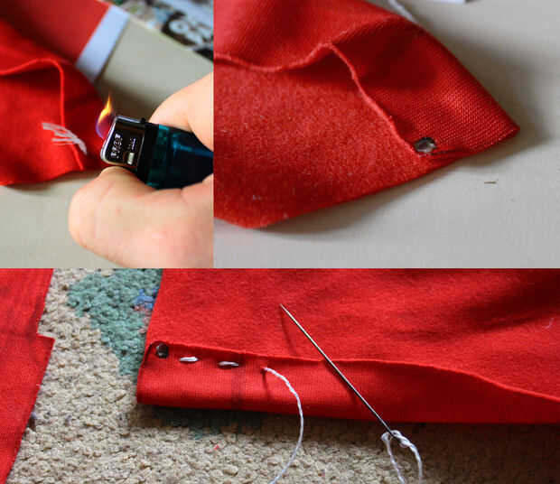 Empiezo con la quema de alrededor de 1-2cm y presionando el piso plástico fundido contra la tela (con el metal de su encendedor, no los dedos!). De esta manera no vienen suelto. Al final se hace lo mismo. Si tienes de pesca línea, 0, 5cm sería mejor creo.