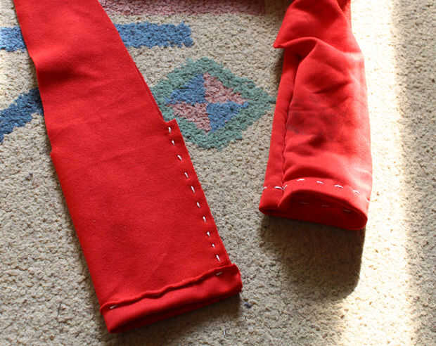 Doblar cada pieza por la mitad, con el interior hacia el exterior. Después de la costura se se ser el revés.