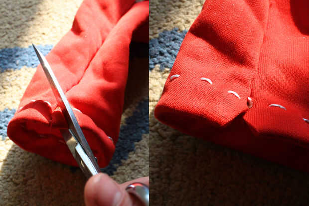 El lado del bolsillo también tiene que ser cosido.