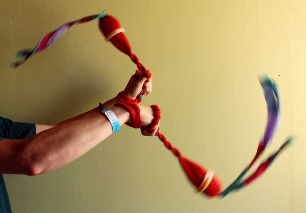 Si usted hizo esta lejos, Felicidades! Ahora puede agregar algunos glowsticks y velos finos hasta el final del PDI para que sea más agradable. Mi poi son un poco demasiado delgada para glowsticks, salga cuando hace girar. Pero puedo poner en la cuerda como en la foto.