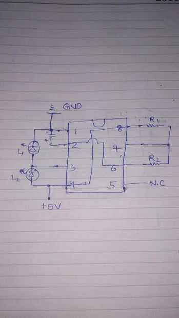 cómo funciona: los transistores de conmutación (PNP) no pueden decidir entre sí y al hacerlo, carga y descarga las tapas y cambia el LED de encendido y apagado. resitors son para limitación de corriente.(originalmente llamado "dos transistor dual-led