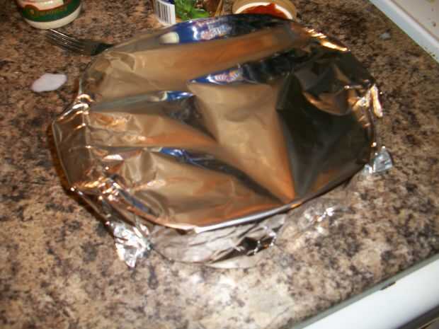 Por último, tapa el recipiente con papel de aluminio. Luego precalentar el horno a 375 grados y deje la pechuga de pollo cocer al horno durante aproximadamente 45 minutos.