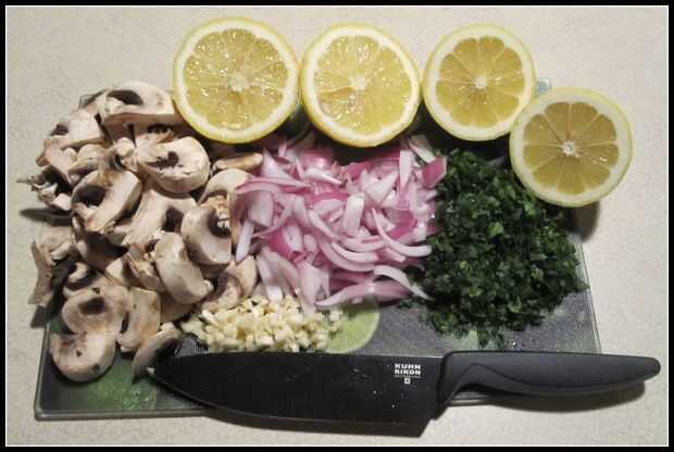 · Lavar los champiñones y cortar tallos (si se prefiere).