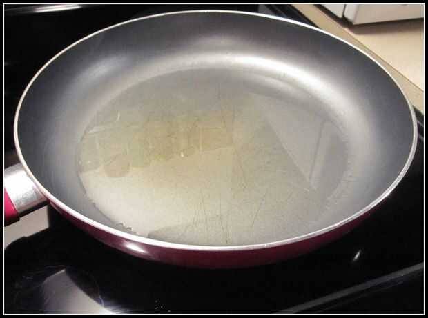 2. calentar 1/4 taza de aceite de oliva en una sartén (o lo suficiente como para cubrir el fondo de la sartén) a fuego medio.