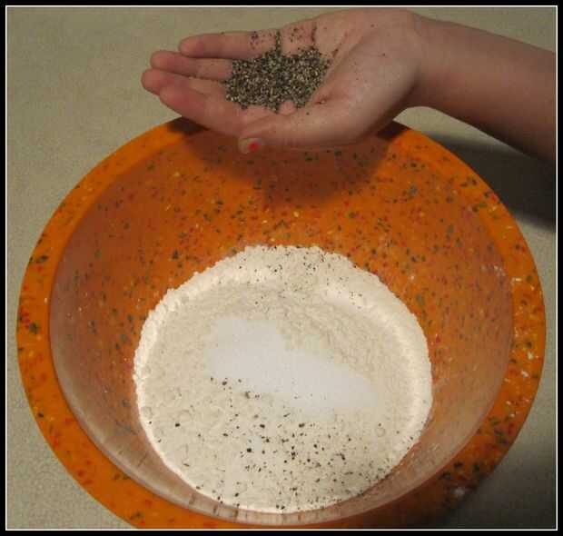 4. harina de temporada con un puñado de sal y un puñado de pimienta fresca molida.