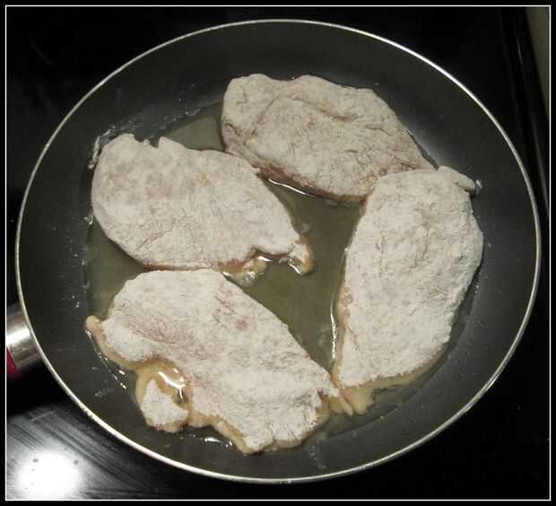 * Punta: Para ver si el aceite está suficientemente caliente para añadir pollo, correr los dedos bajo el agua y salpicar en sartén. Si el aceite chisporrotea, es lo suficientemente caliente.