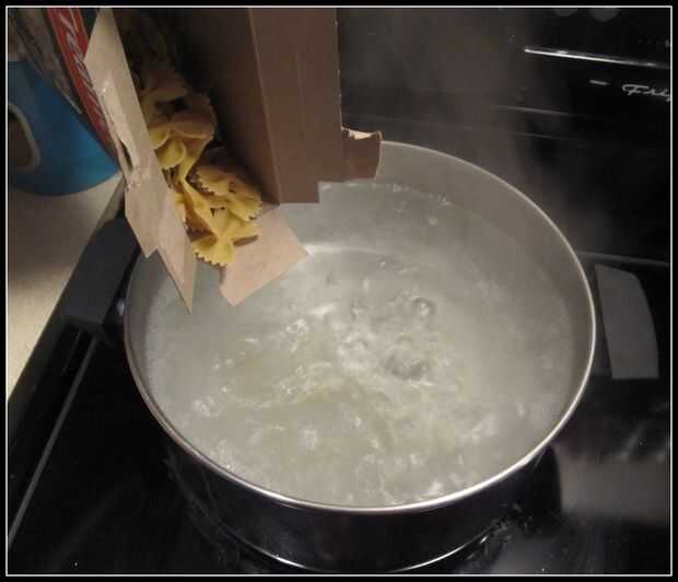 2. agregue la pasta al agua una vez que esté hirviendo.