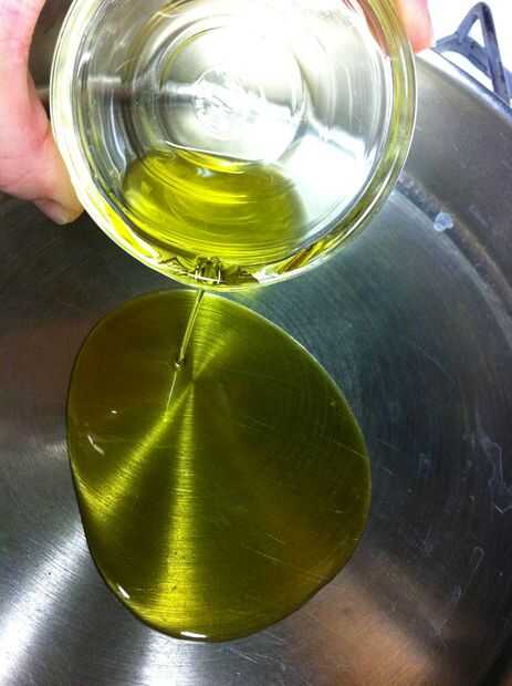 Añadir unas cucharadas de aceite de oliva a una sartén grande. En esta receta utilicé una cacerola que fríe 12"