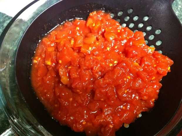 Paso 4: Escurrir los tomates, reserva el jugo.