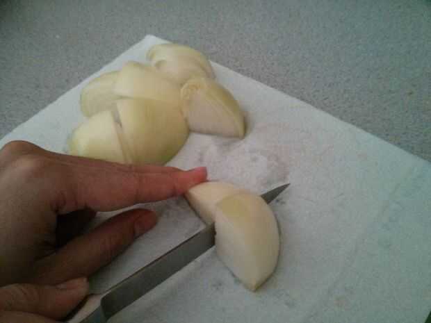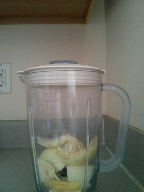 • Agregar cuatro dientes de ajo junto con la cebolla cortada pequeña y 1 pulgada de ajo en una licuadora. Añadir unos 25 ml de agua en la licuadora antes de licuar. Este alisado de ayuda el proceso de mezcla. Mezclar hasta que todos los ingredientes están licuados. Por lo general, los ingredientes licuados estarán en color amarillento verde claro.