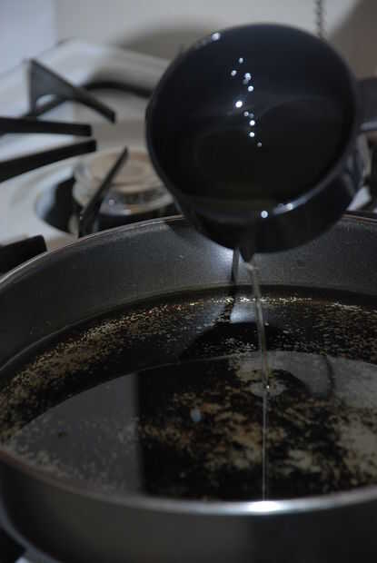 3. calentar el aceite hasta que comience a ver burbujas subiendo el centro de la cacerola.