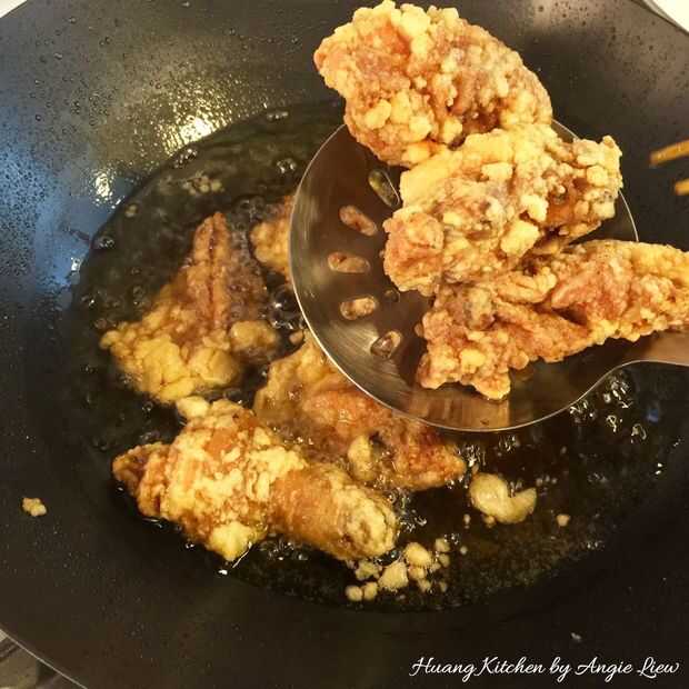 Paso 10: Con un filtro, retire el pollo frito el aceite caliente.