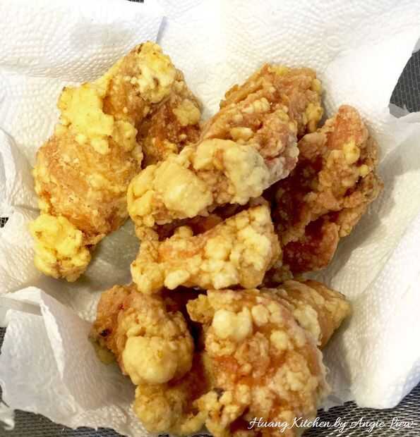 Paso 11: Escurrido el pollo frito en papel absorbente y reservar.