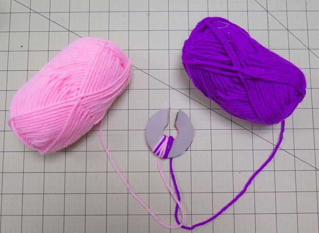 Es muy fácil, simplemente envuelva dos (o más) colores de hilo al mismo tiempo. Envolverlos juntos aseguran que usted obtendrá una distribución más uniforme de los colores a lo largo de la pom pom. Además, los colores más que hacer, el menos veces que tendrás que envolver puesto que usted va envolviendo más de una cadena en un momento.