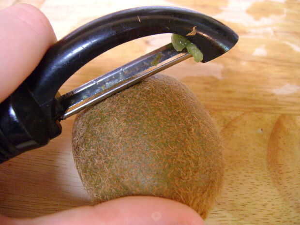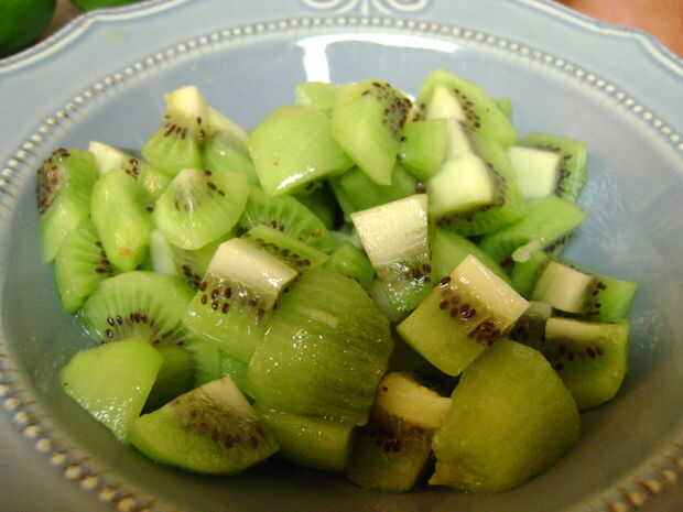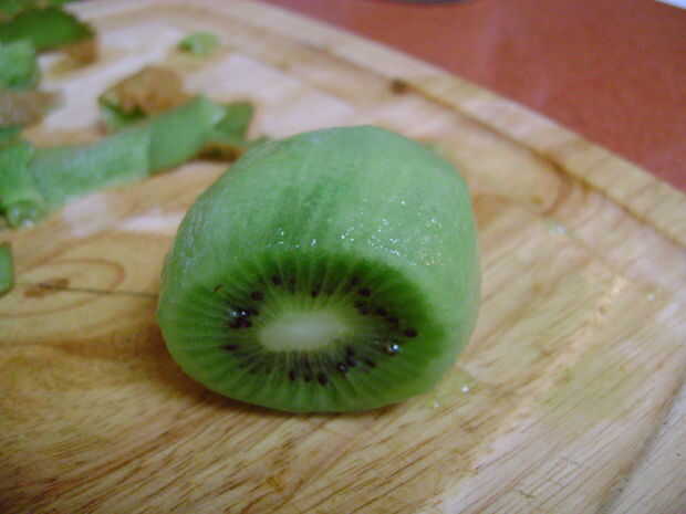 Ahora que tienes las cosas para hacerlo necesita pelar y cortar los kiwis en trozos.