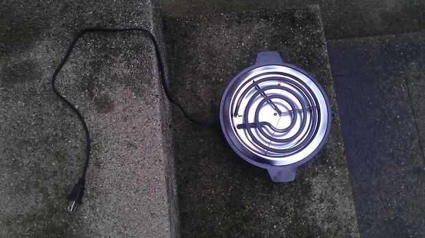 Después de repetir el experimento la cantidad deseada de veces, disponer de todas las latas en el cubo de basura y reciclaje. A continuación, apague la estufa, luego , desconecte primero en el cable de extensión (si existe), luego en la pared. Deje que se enfríe la estufa, entonces cójala por las asas para llevarlo dentro. Usted no quiere conseguir calor ampollas como hice yo.