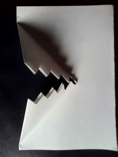 Doblar la solapa superior para formar un triángulo y el pliegue con el pulgar o el dedo.