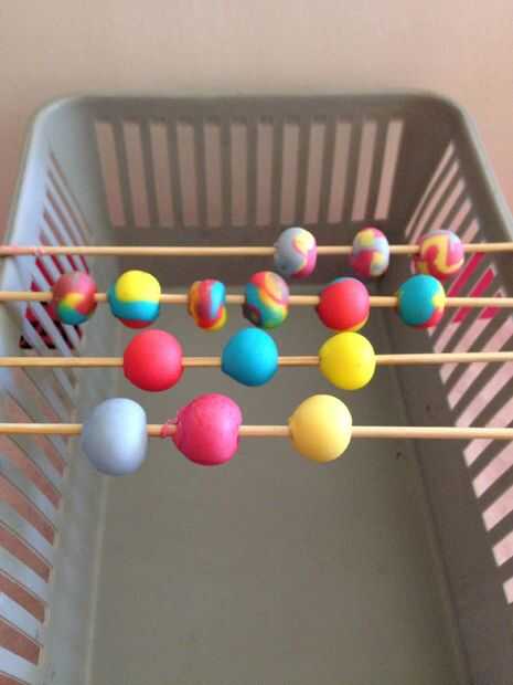 Para mantener su forma redonda, las cuentas tendrán que ser colgado en algún lugar para que ellos no toquen nada. Usé una cesta plástica que era el ancho adecuado para sostener mis pinchos.