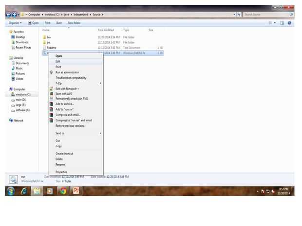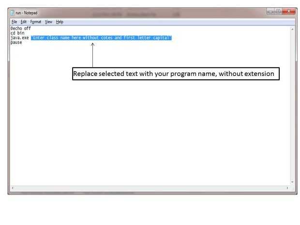 Ahora tenemos que editar el run.bat. Simplemente haga clic derecho y seleccione Editar. Ahora escriba el nombre de su clase en él y guardarlo.