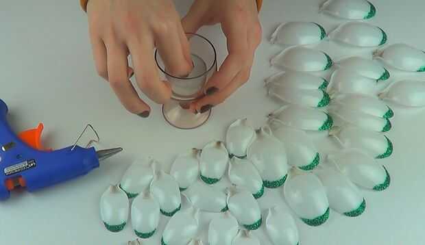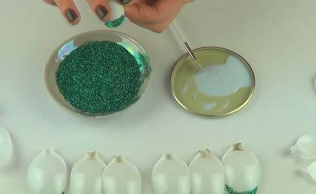 Para crear el contenedor moderno, corte la base de la cuchara, dejando sólo el extremo redondeado. Dependiendo del tamaño del contenedor, necesita alrededor de 40 cucharas para crear el proyecto terminado.