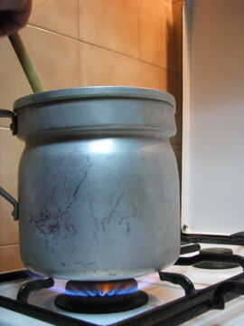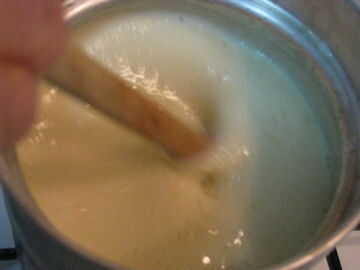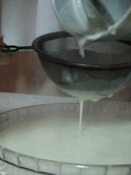 En algún momento, todo comenzará a crecer y ser ligeramente burbujeante. Gire el calor baja y girando sucesivamente, durante otro par de minutos. Luego del filtro a una placa plana agradable o algo similar (yo usé de vidrio porque se ve mejor!) y deje que se enfríe.